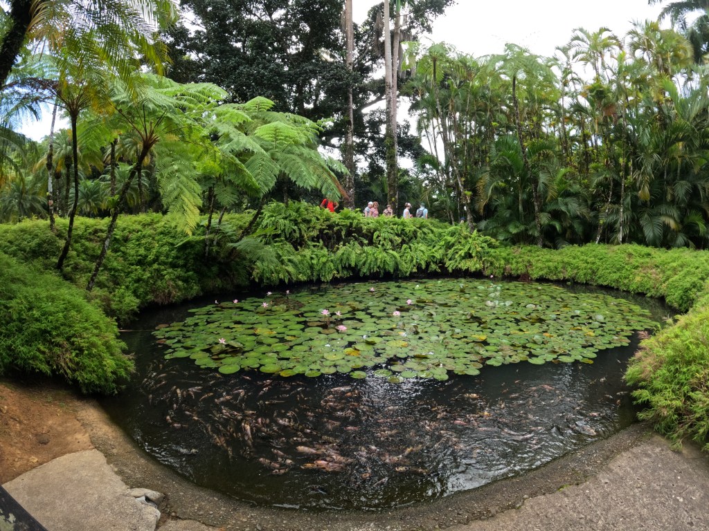 Jean-Philippe Thoze Botaniste a constitué ce jardin avec les espèces qu’il a découvert au fil de ses explorations. On peut y voir des bambous, des roses de porcelaine, des oiseaux de paradis, hibiscus, meme des nymphéas dans une mare plein de poissons. Jardin japonais, jardin exotique et au milieu des ponts suspendus pour marcher à travers la végétation et partir à la découverte de la beauté de cette endroit. Je ne vais pas en dire plus, les photos sont magnifiques et vraiment c’est un endroit que je conseille de visiter en dehors d’une journée passé à Fort de France. Quelques lézards vont vous guider….
