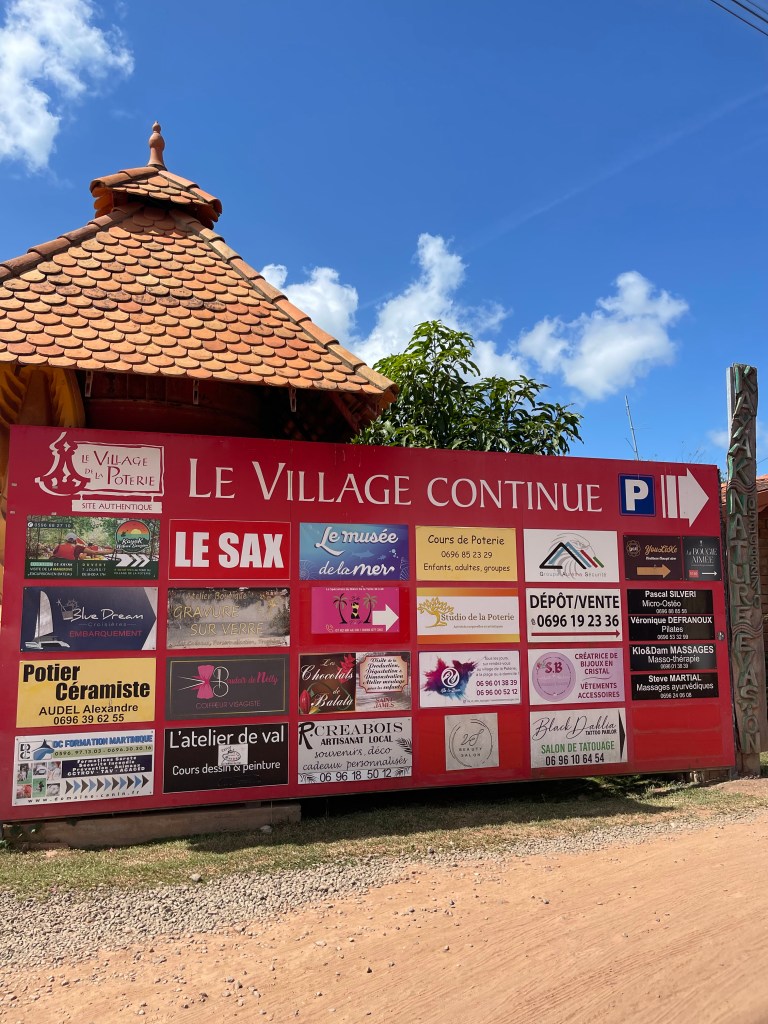 Le Village de la Poterie est situé aux Trois-îlets. Après un chemin caillouteux, on sort de la voiture sous un soleil de plomb. C’est un endroit où on peut trouver des souvenirs fabriqués (main ou pas je sais pas trop).
