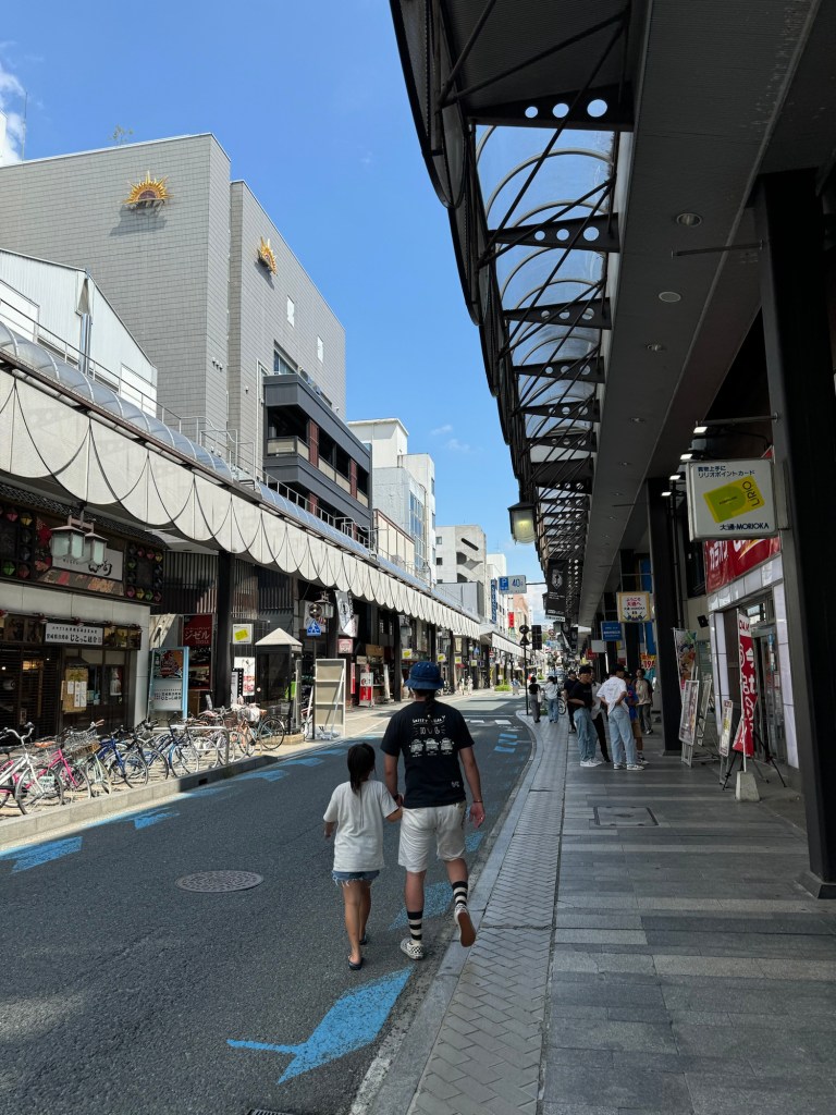 On flâne dans le quartiers des marchands traditionnels de Morioka. Ici on ne voit pas de grandes arcades ni de chaines, mais des boutiques, des petits ponts, des fontaines….
