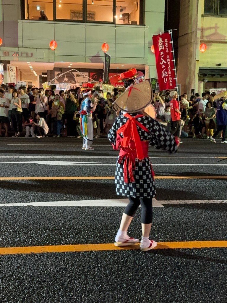 Aujourd’hui, le Sansa Odori est un spectacle grandiose qui célèbre cette histoire à travers des danses rythmées, des tambours taiko percutants, et des flûtes mélodieuses. Les rues de Morioka s’animent avec des défilés de danseurs vêtus de costumes traditionnels éclatants, exécutant des chorégraphies soigneusement orchestrées. Les participants, allant des écoliers aux personnes âgées, unissent leurs efforts pour faire vibrer la ville au son des tambours et des chants.