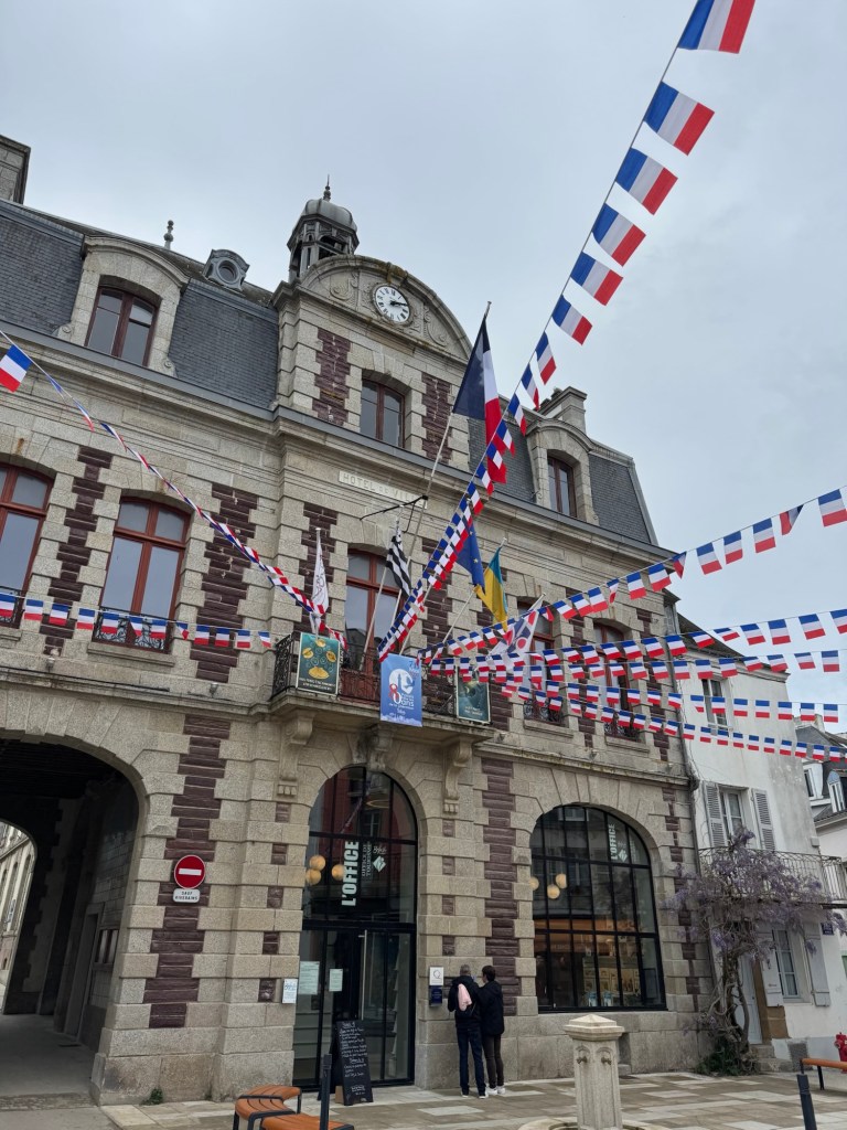 Depuis Paris, prendre le train à Montparnasse, et descendre à Auray. Depuis Auray, et en haute saison prendre le Tire Bouchon jusqu’à Quiberon ou bien le bus Breizh Go depuis la gare d’Auray. Nous avons choisi l’option bus car en avril, le tire bouchon n’était pas en service. Au total, cela vous prendra une heure à passer entre les paysages bretons. Nous passons par Carnac et ses fameux menhirs – vous aurez peut-être la chance de croiser Obélix – et la Trinité sur Mer, petite station balnéaire familiale. Le bus dépose directement sur le Port au niveau du Terminal de Ferry.